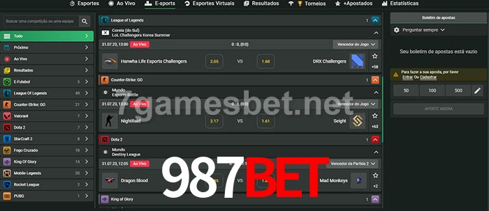 A aposta 987bet oferece aos jogadores a experiência mais conveniente de apostas em eSports!
